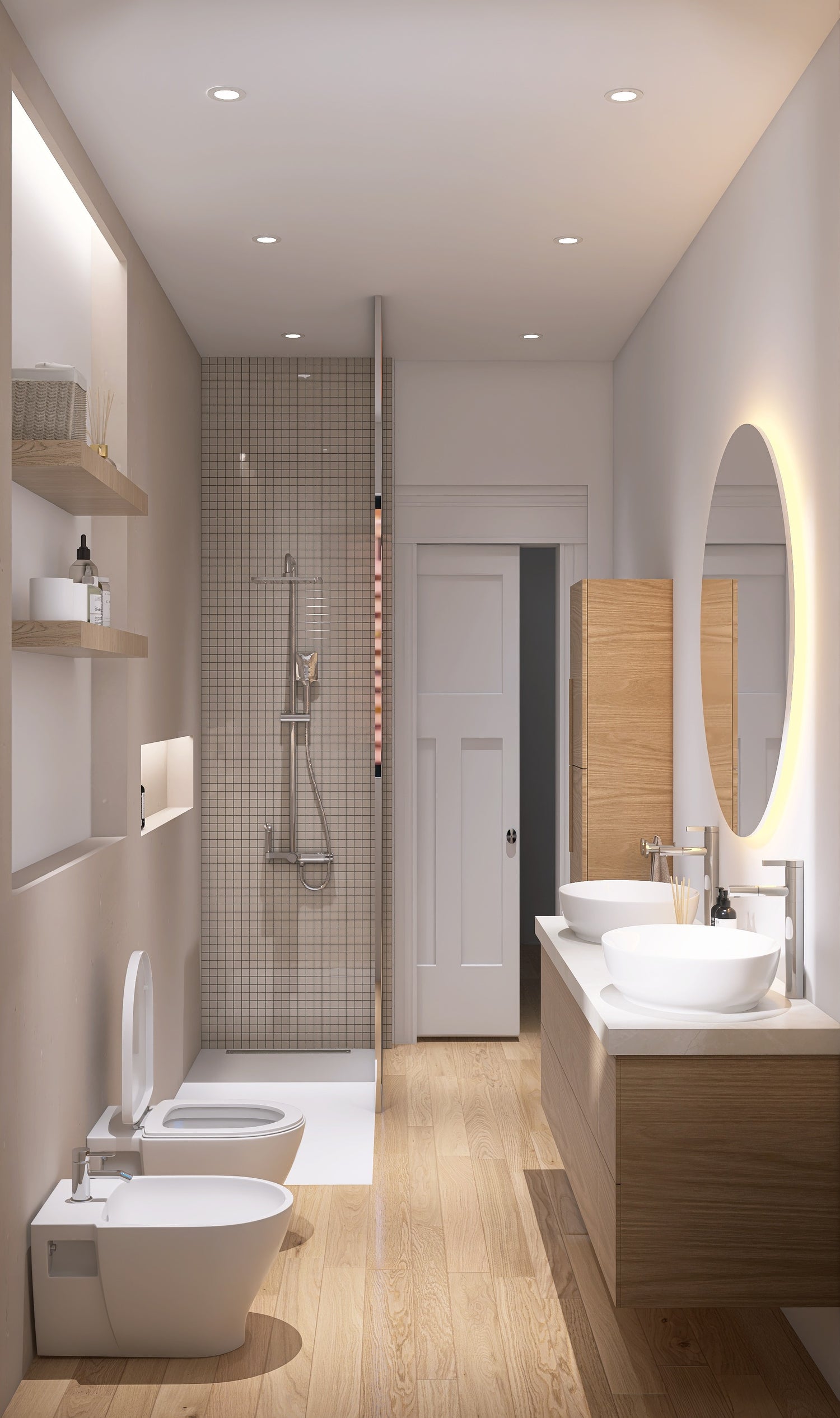 Ce projet de rénovation, réalisé dans un appartement niçois, avait pour objectif de transformer une salle de bain vieillissante en un espace moderne, épuré et chaleureux. L’inspiration s’est tournée vers l’esthétique scandinave, avec une prédominance de matériaux naturels, une palette douce de blancs, beiges et bois clairs, et un design pensé pour le quotidien.